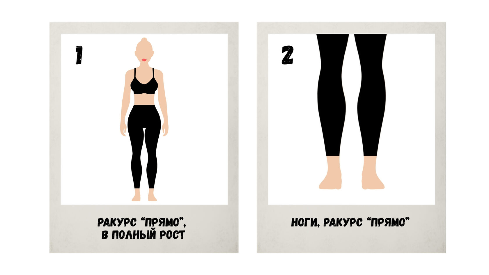 1 и 2. Ракурс "прямо" (в полный рост + ноги)