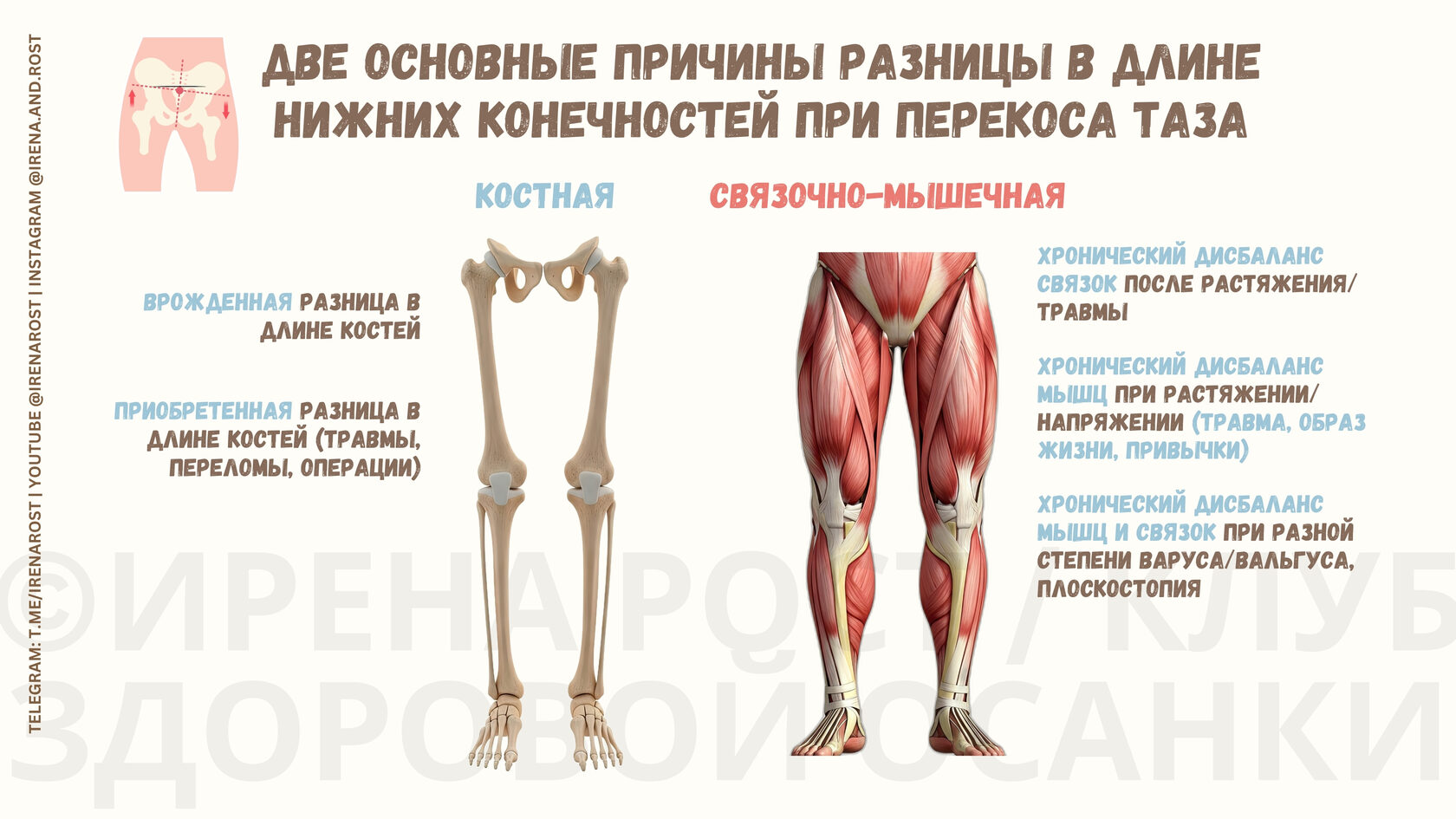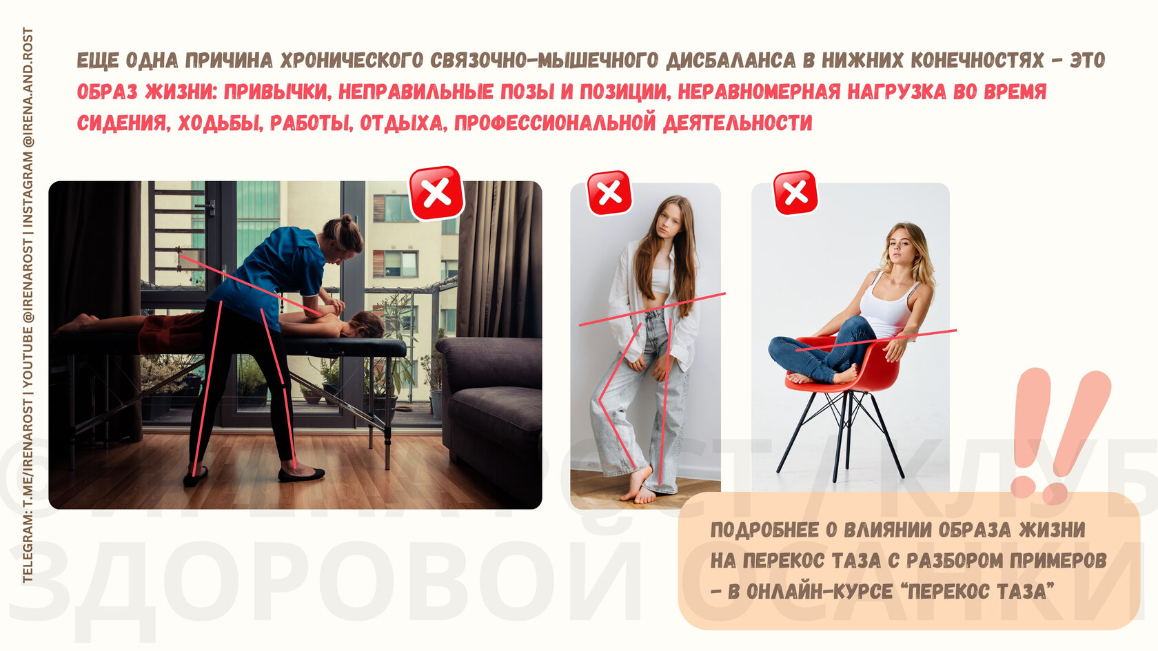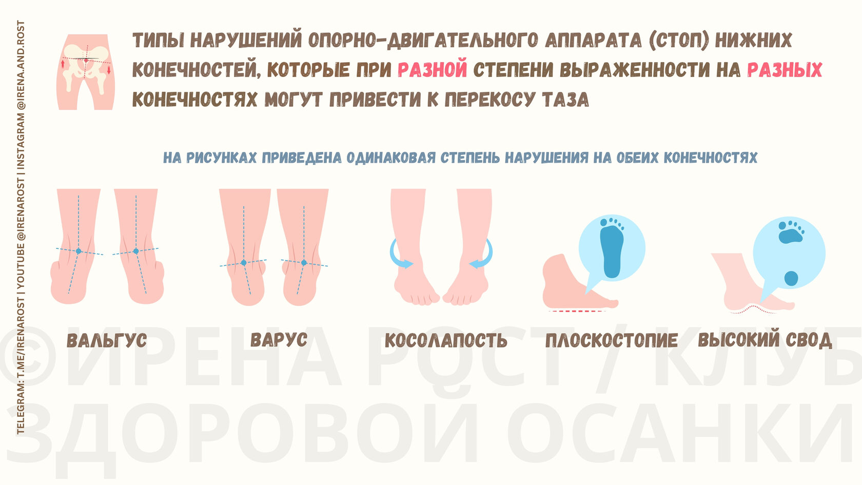 Глобально можно выделить ДВЕ основные причины перекоса таза: