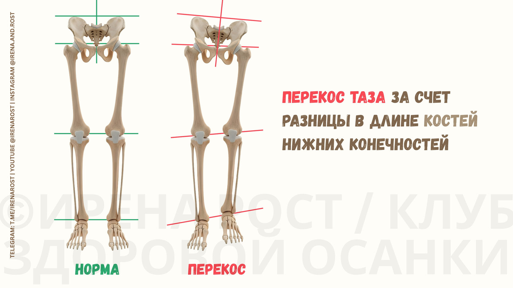 - Перекос таза может быть обусловлен разницей в длине ног.
